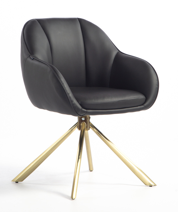 HR2055N Scaun Neagră din Piele Ecologica cu Bază Aurie