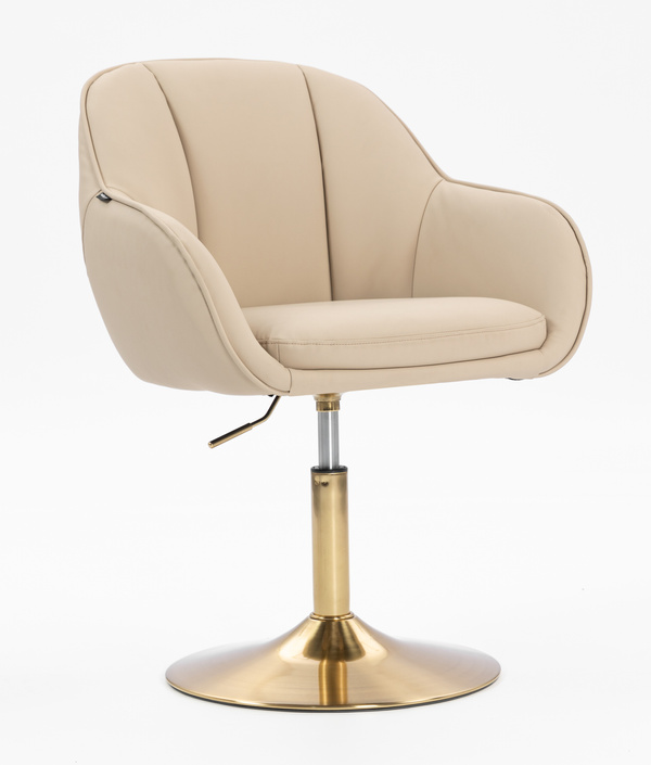 HR2055N Scaun Crem din Piele Ecologica cu Bază Aurie