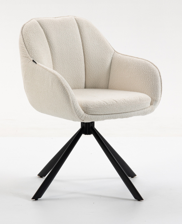 HR2055 BAZĂ STEA Scaun Crem din Boucle cu Bază Neagră