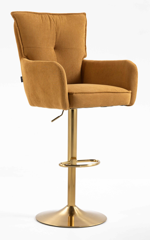 HR250W Scaun Catifea Reiată Premium Ruloare Curry Galben Bază Aurie