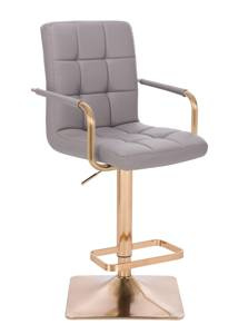 HC1015WP Pătrat Scaun Gri Piele Ecologica Bază Aurie
