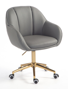HR2055K Scaun Gri din Piele Ecologica cu Bază Aurie